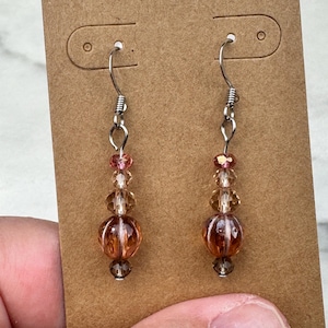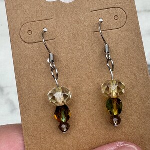 Perfect for vacation, these earrings feature a large yellow Czech glass bead with smaller aqua and turquoise accent beads on stainless steel earwire with silicone backing.